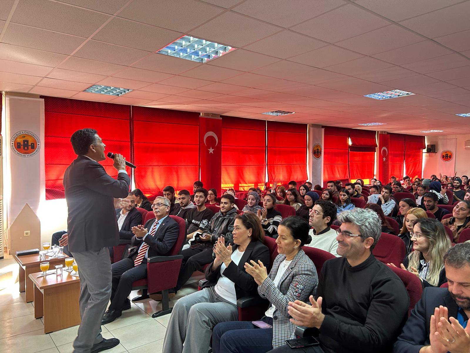 Kozan Meslek Yüksekokulu “Tecrübeden Geleceğe Söyleşiler” etkinliğinin beşincisi 10.12.2025 Çarşamba günü saat 11.00’de Kozan Belediye Başkanı Sayın Mustafa ATLI’nın katılımıyla meslek yüksekokulumuz konferans salonunda gerçekleştirilmiştir.