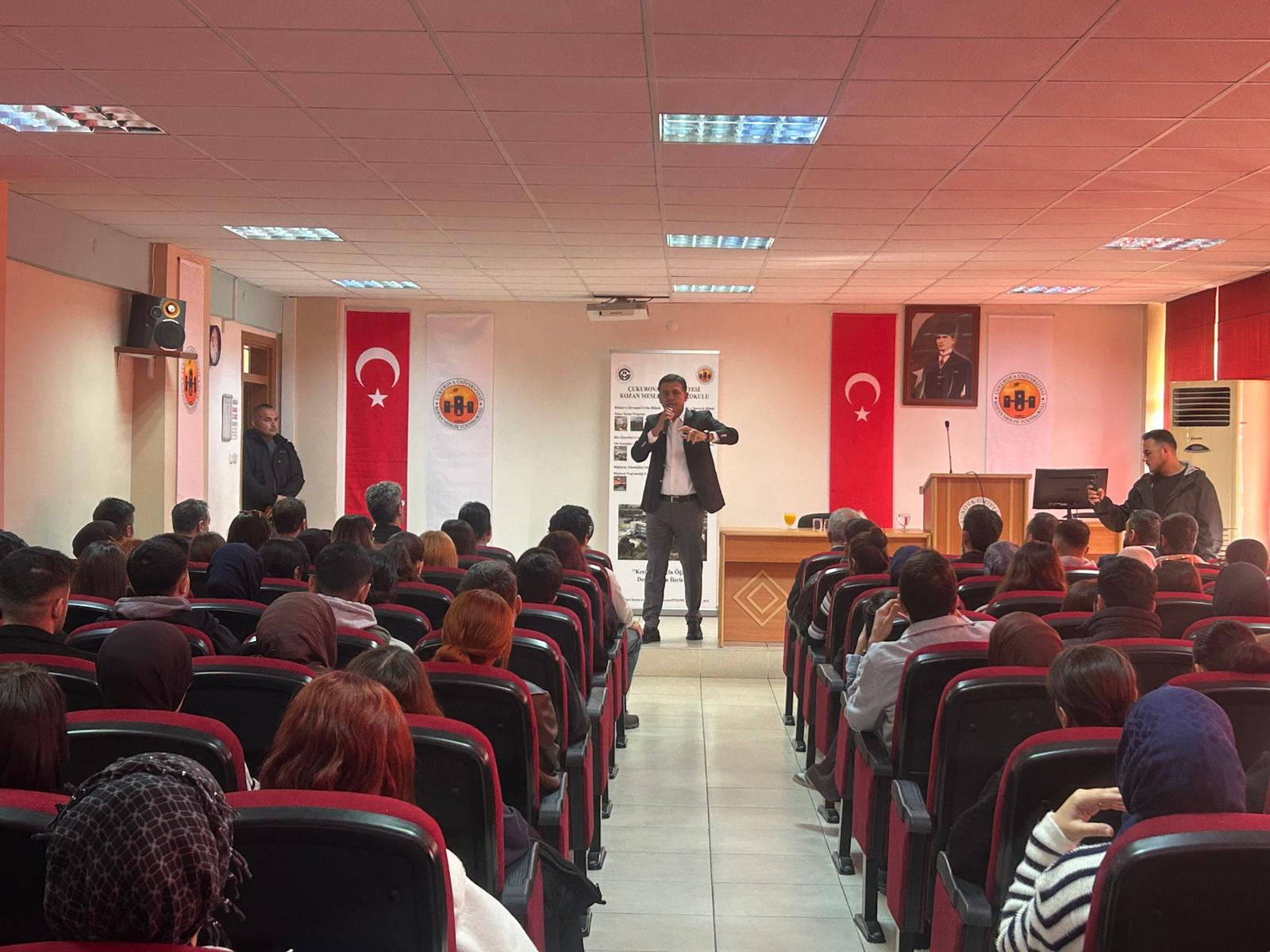 Bu etkinlik ile öğrencilerimizin gelecekle ilgili kariyer yolculuklarına daha bilinçli bir şekilde adım atmalarına yardımcı olmak amaçlanmıştır. Etkinlikte, Sayın Mustafa ATLI kendi kariyer yolculuğundan, okuma mücadelesinden ve kararlılığının eğitim hayatına yansımalarından bahsetti. Ayrıca, hedef koymanın ve geleceğe odaklanmanın uzun vadeli başarı için ne kadar kritik olduğunu vurguladı. Etkinlik boyunca öğrenciler, Belediye Başkanımıza merak ettikleri soruları yönelttiler ve bu interaktif ortam, katılımcılar için son derece verimli oldu. Belediye Başkanımız öğrencilerin sorularını içtenlikle yanıtlayarak, gençlere yol gösterici tavsiyelerde bulunup, edindiği tecrübeleri de öğrencilerimizle paylaşmanın yanı sıra öğrencilerimizin talep ve isteklerini de dinleyerek her zaman öğrencilerimizin ve üniversitemizin yanında olduğunu ifade etti. Etkinliğin sonunda ise öğrencilerimize güzel bir müjde vererek üniversitemiz Kozan yerleşkesinde bu yıl bahar şenliğini birlikte düzenlemek için ortak bir çalışma yapacaklarının sözünü verdi. Söyleşi sonrası öğrencilerimizin isteklerini kırmayarak fotoğraflar çektiren Sayın Mustafa ATLI meslek yüksekokulumuz yemekhanesinde öğrencilik günlerine geri dönüp sıraya girerek öğrencilerimiz ve öğretim elemanlarımızla birlikte yemek yedi.