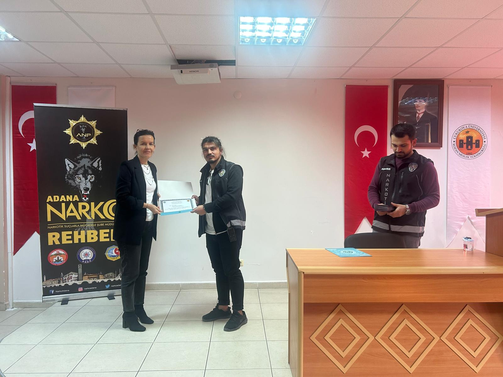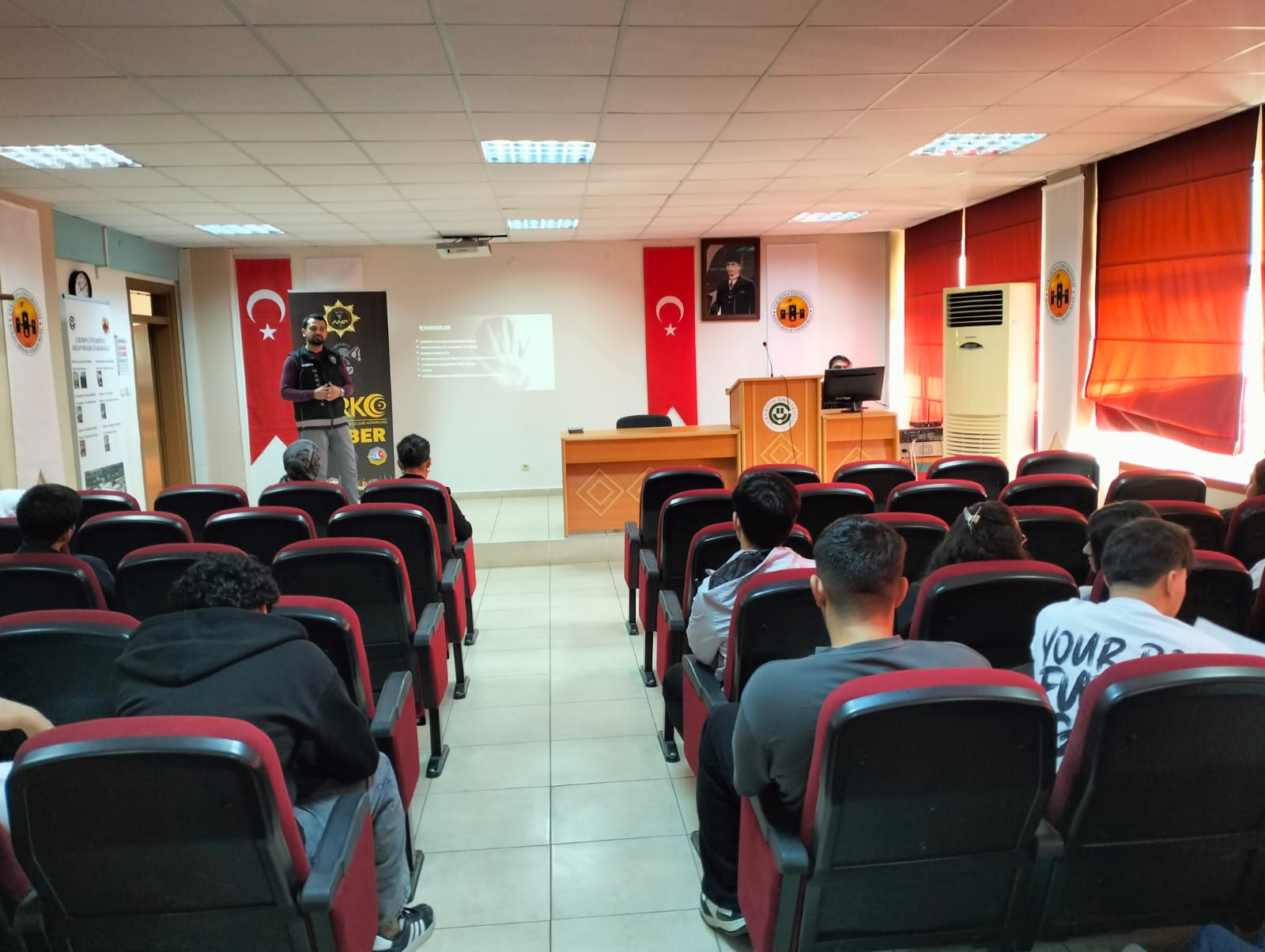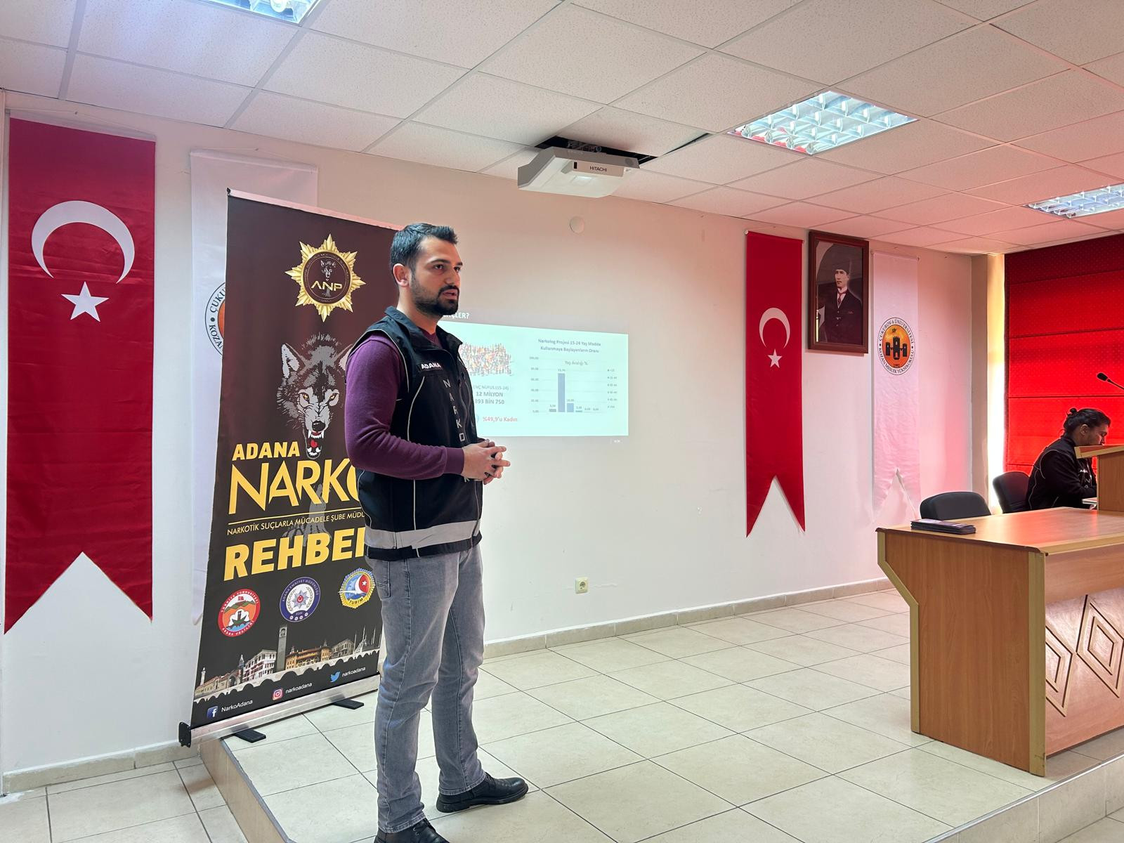 Yüksekokulumuzun düzenlemiş olduğu Farkındalık Seminerlerinin yirmi altıncısı Narko Rehber Eğitimleri “Bağımlılıkla Mücadele” semineri Kozan İlçe Emniyet Müdürlüğü Narkotik Suçlarla Mücadele Şubesi katkılarıyla 11 Aralık 2025 Perşembe günü saat 11.15'te Konferans Salonumuzda gerçekleştirildi.