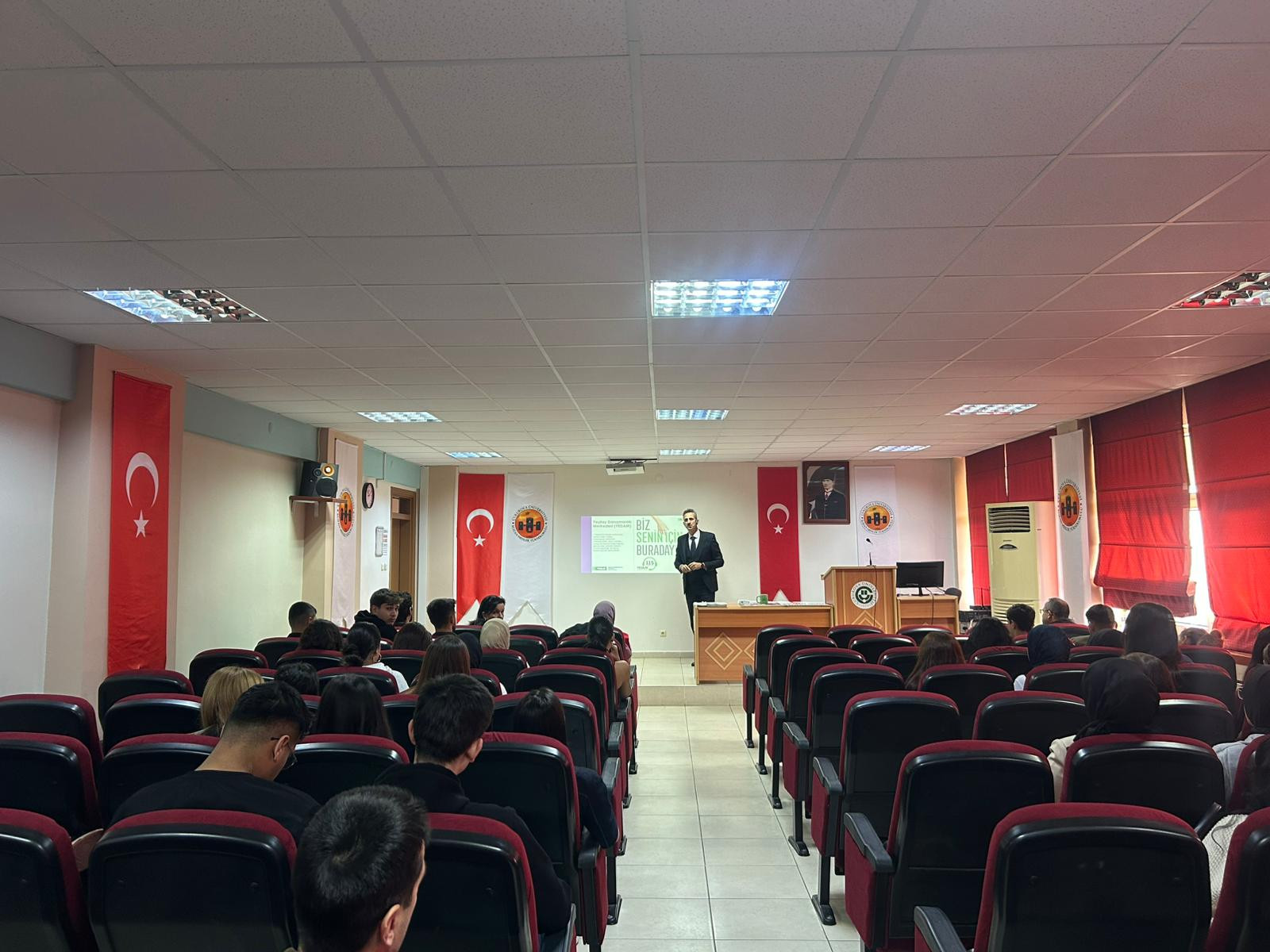 Meslek Yüksekokulumuzun düzenlemiş olduğu Farkındalık Etkinlikleri kapsamında Adana Gençlik ve Spor İl Müdürlüğü işbirliğiyle 24 Kasım 2025 Pazartesi günü saat 11.00’de yüksekokulumuz konferans salonunda “Bağımlılıkla Mücadele” konulu seminer MDR/ Sosyolog Ayhan ÇİNKILIÇ’ın katkılarıyla gerçekleştirildi.
